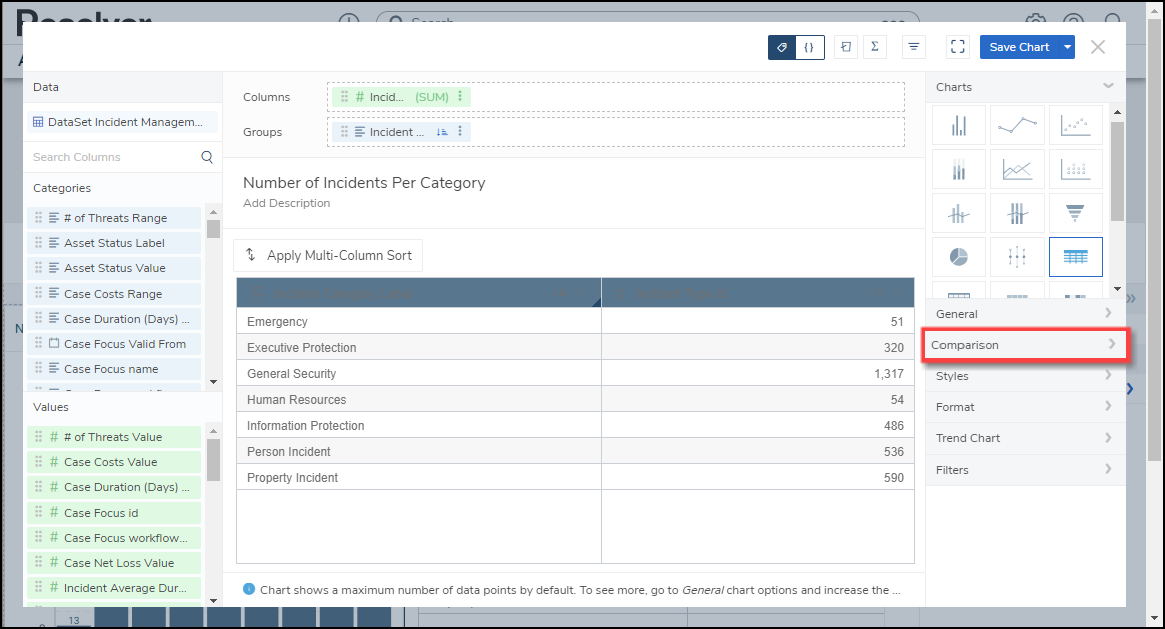 The user account you use to log into Resolver must have Administrator permission to add a Comparison to a Chart.