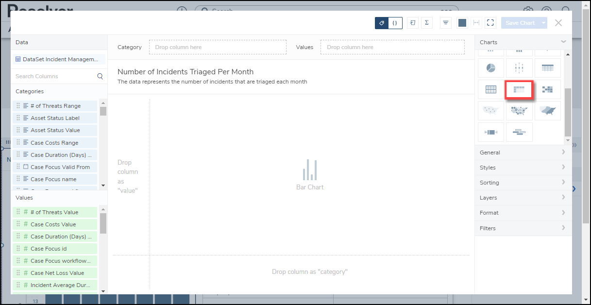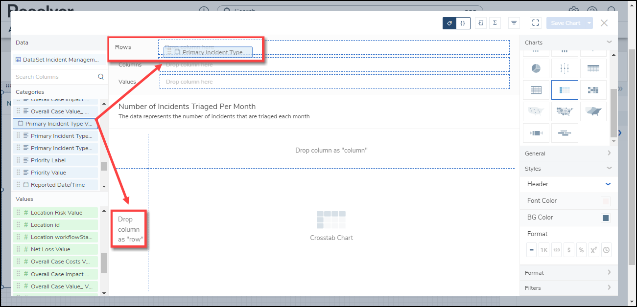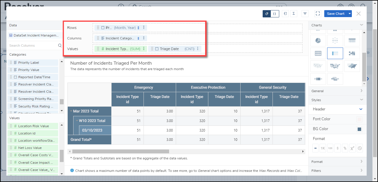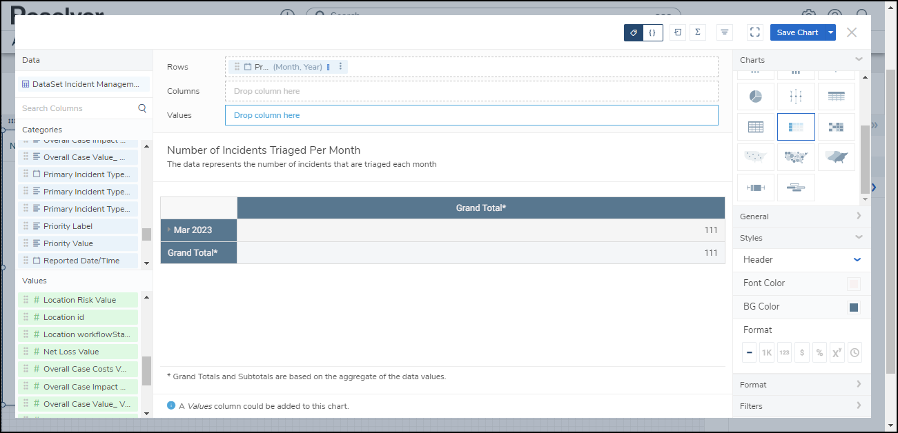 Resolver’s Dashboard Builder allows Administrators to build custom Dashboards using the Dashboard Data Sets published within their Org.