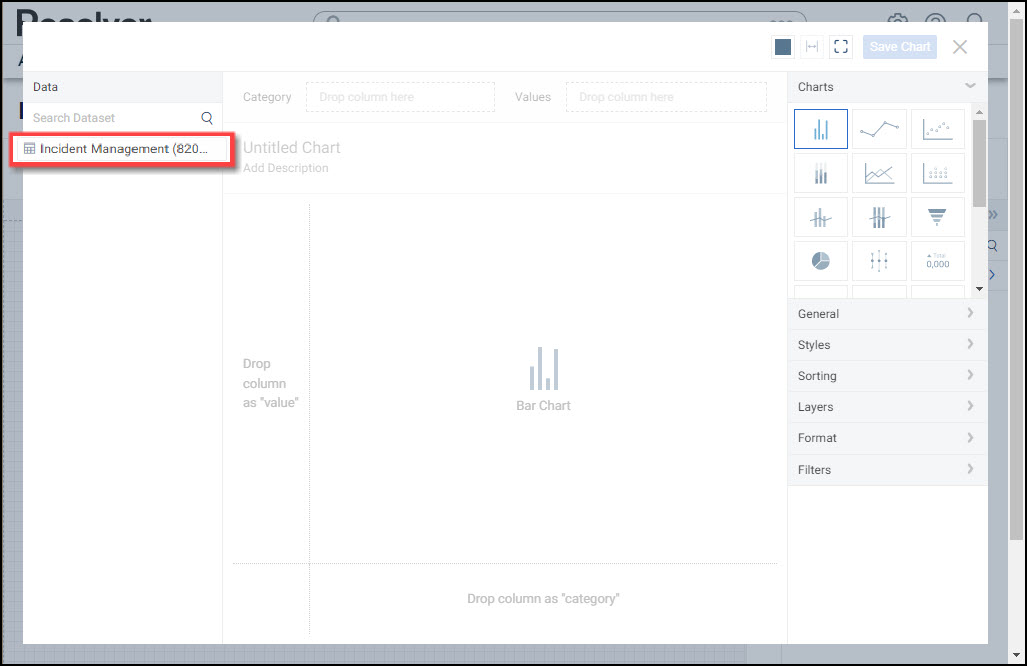 - From the Chart screen, click on a Dashboard Data Set from the Data Panel.