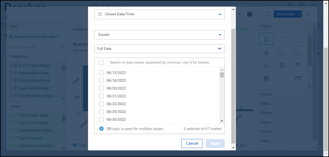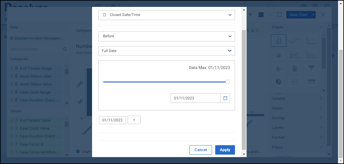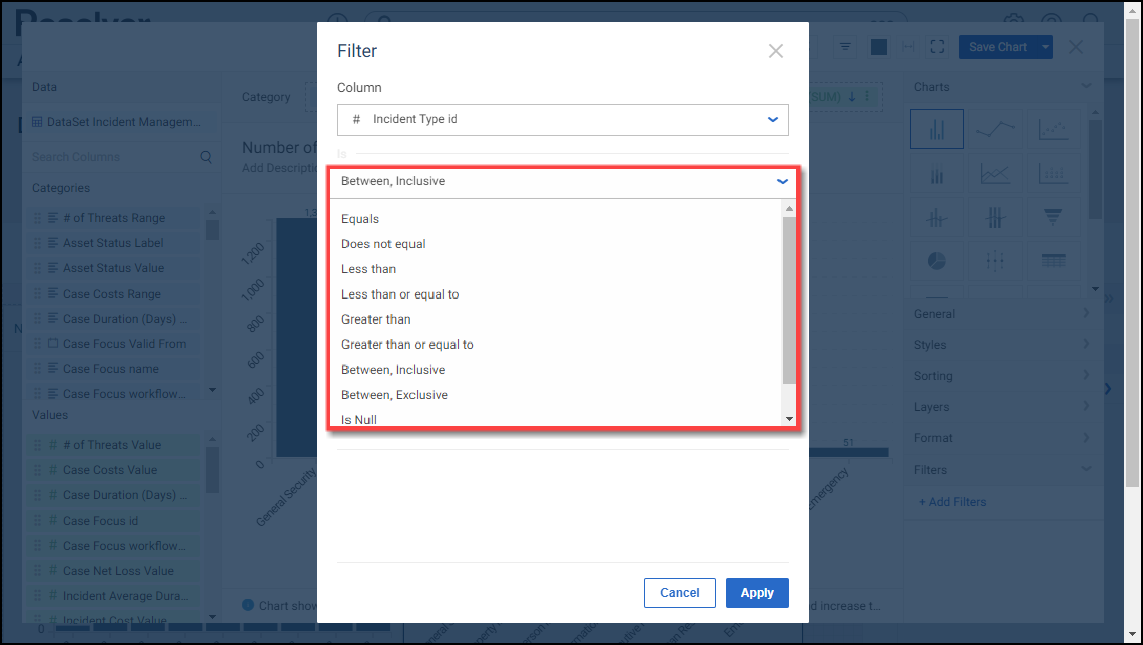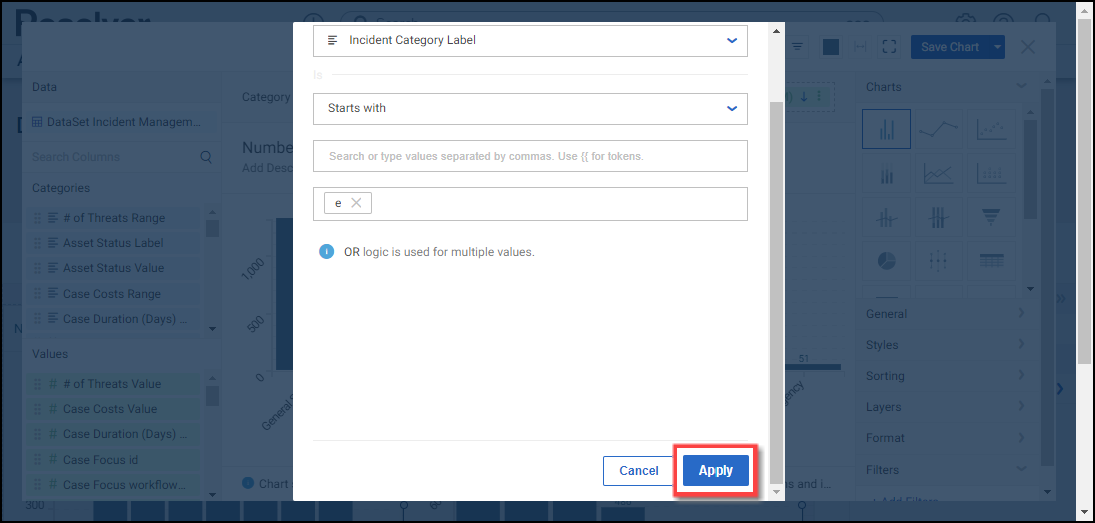- When you have created your filter condition, click the Apply button to apply the condition to the Chart.