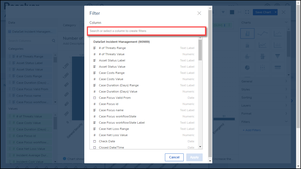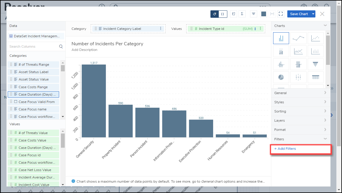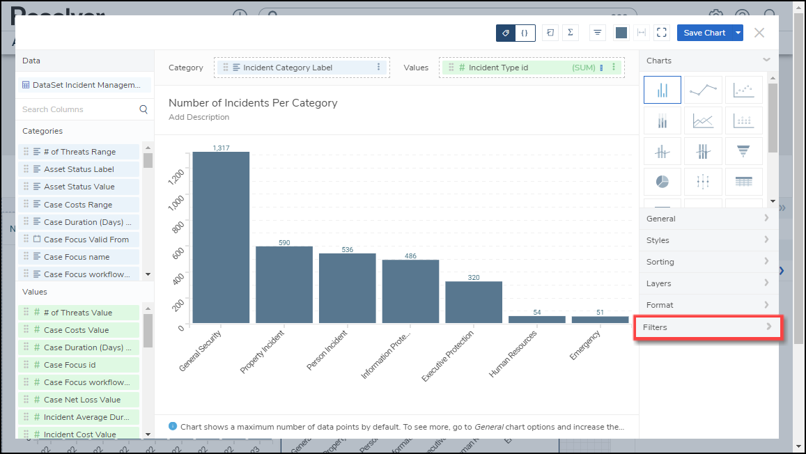 The user account you use to log into Resolver must have Administrator permission or Data Management advanced permissions to add a Chart Filter.