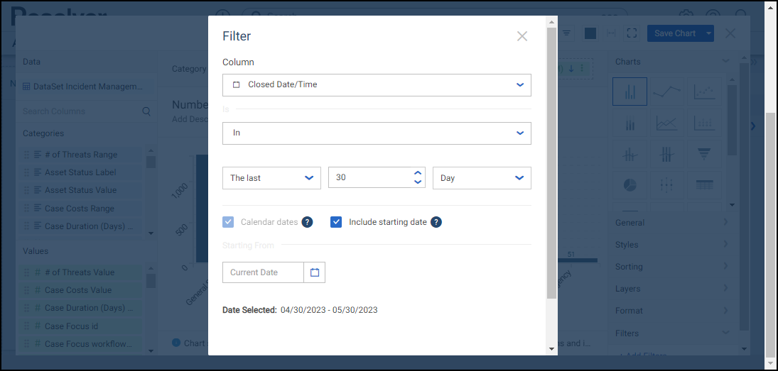 - Include Starting Date: Includes (enabled) or excludes (disabled) the starting date in the range.