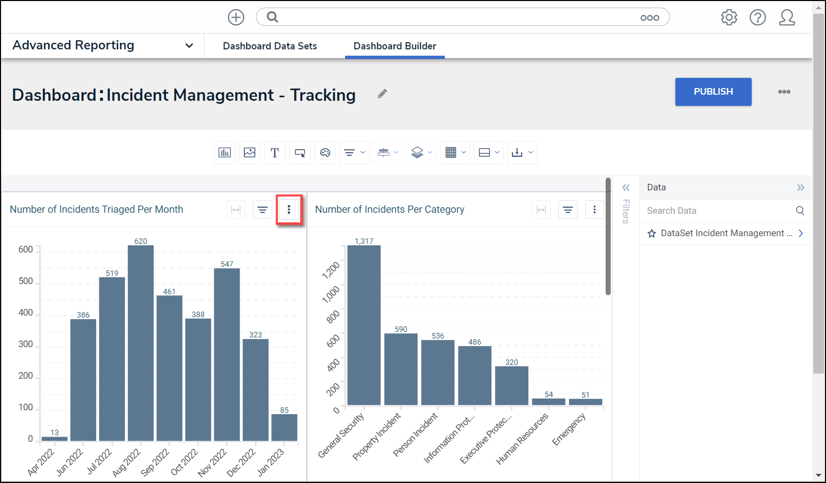 - From the Dashboard Builder screen, click a Dashboard Name.