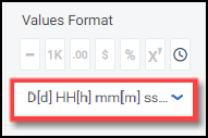 Duration: The Duration Value Format will display the value in date and time format (e.g., 1D, 12H, 59M, 25S). Users can select a Date and Time format from the Format dropdown menu.