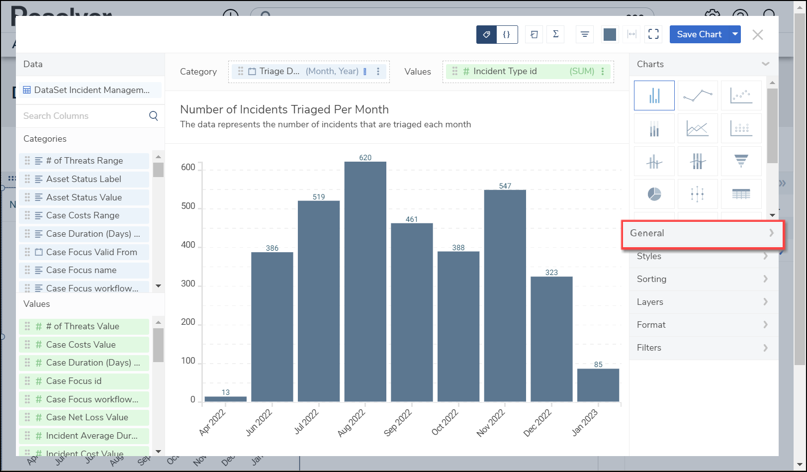- From the Chart screen, click the General panel from the Configuration Panel.