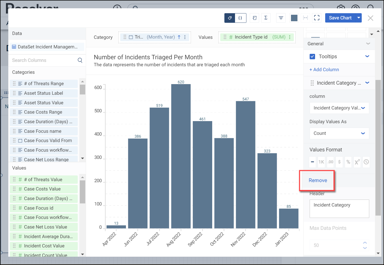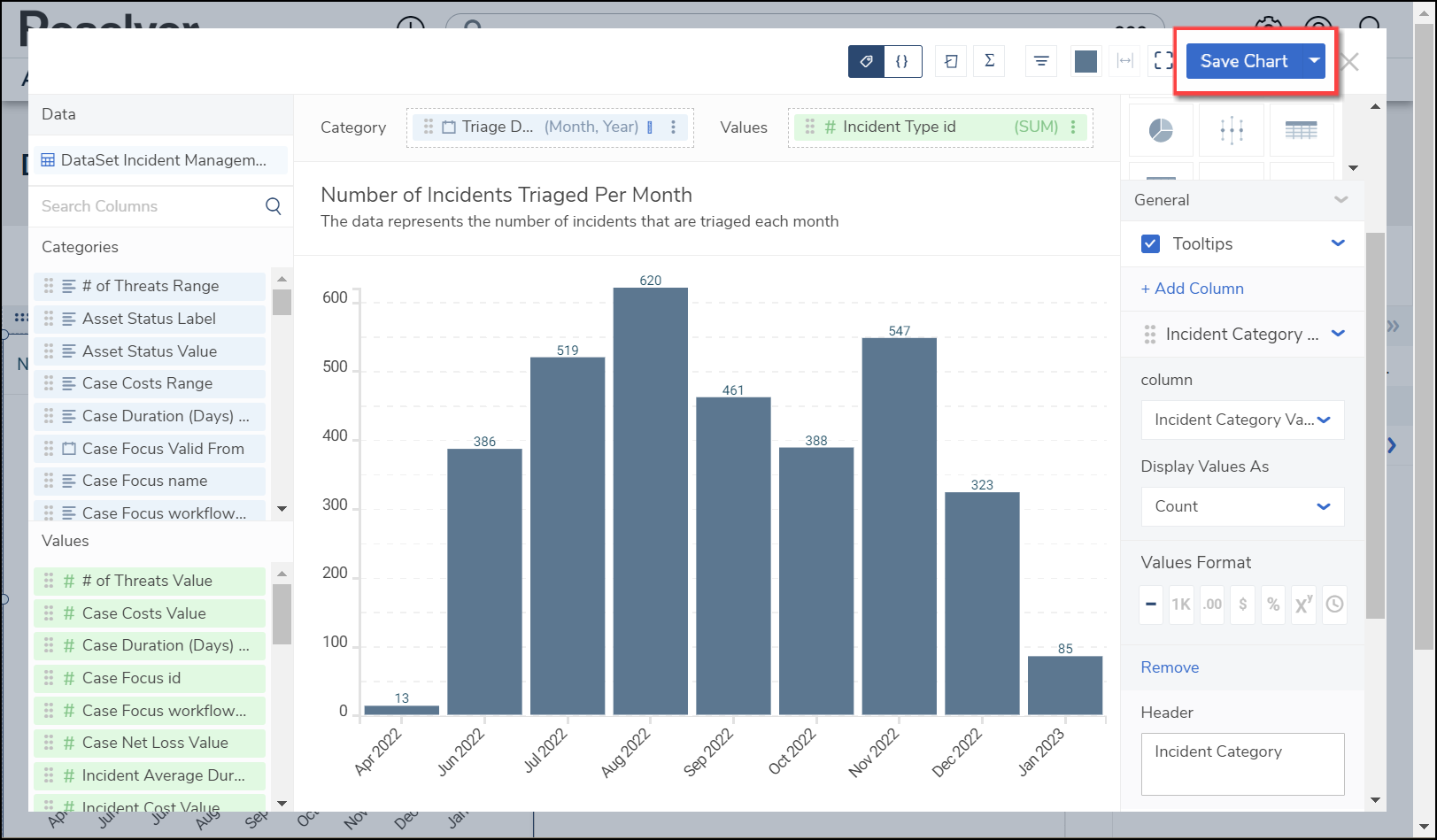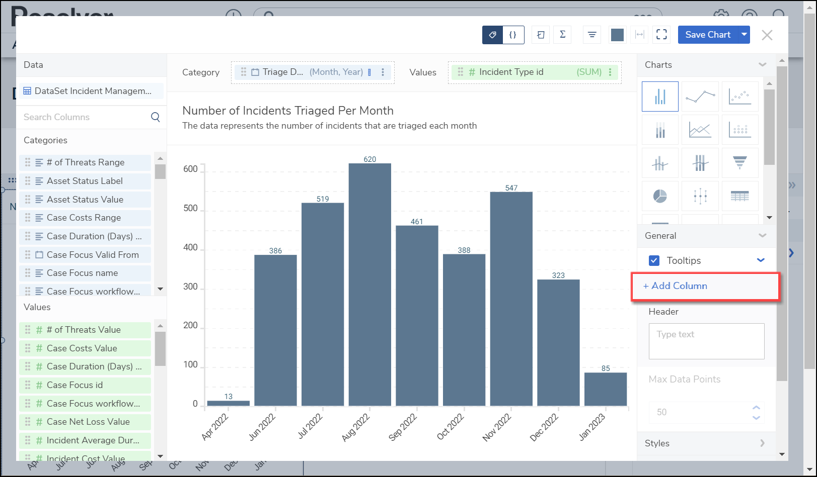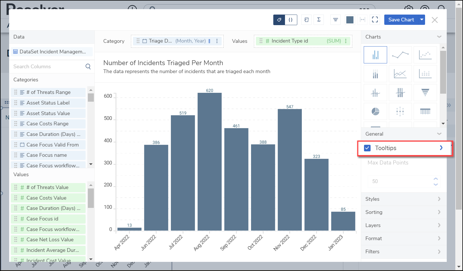 - Click the Save Chart button to save the Tooltip to the Chart.