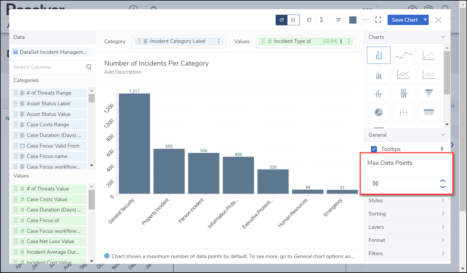 Note: The Max Data Points field will be greyed out on Charts that use Date and Time Data values. |
