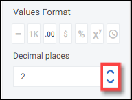 Decimals: The Decimals Values Format will include decimal places in the value. The number of decimal places can be set in the Decimal Place field by clicking the increase or decrease arrows.