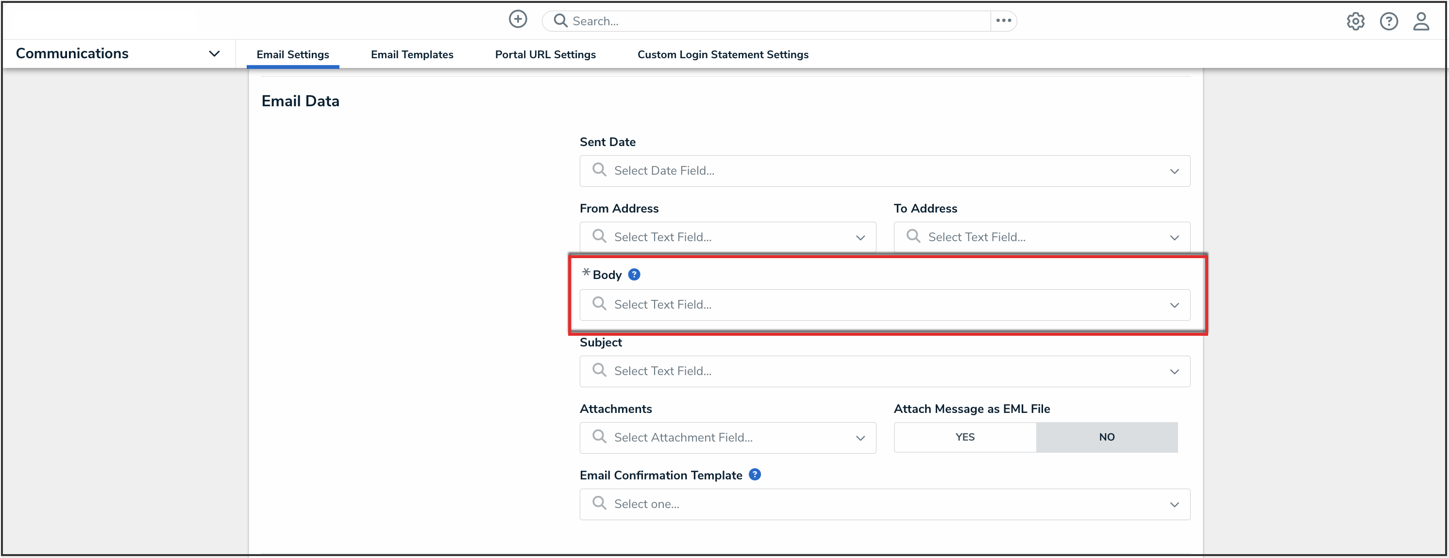 - The Email Data section allows Administrators to map email data to applicable fields on the generated objects. The following are optional fields for additional configuration: