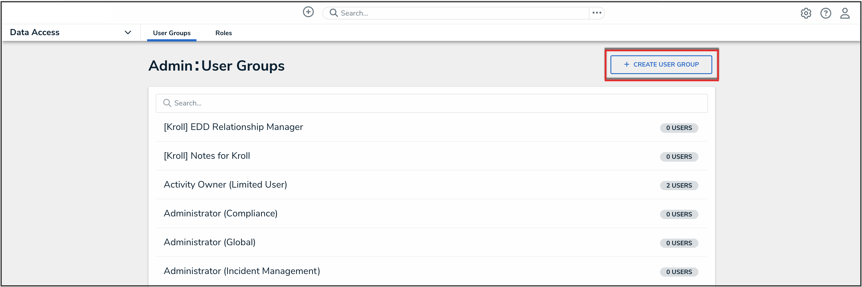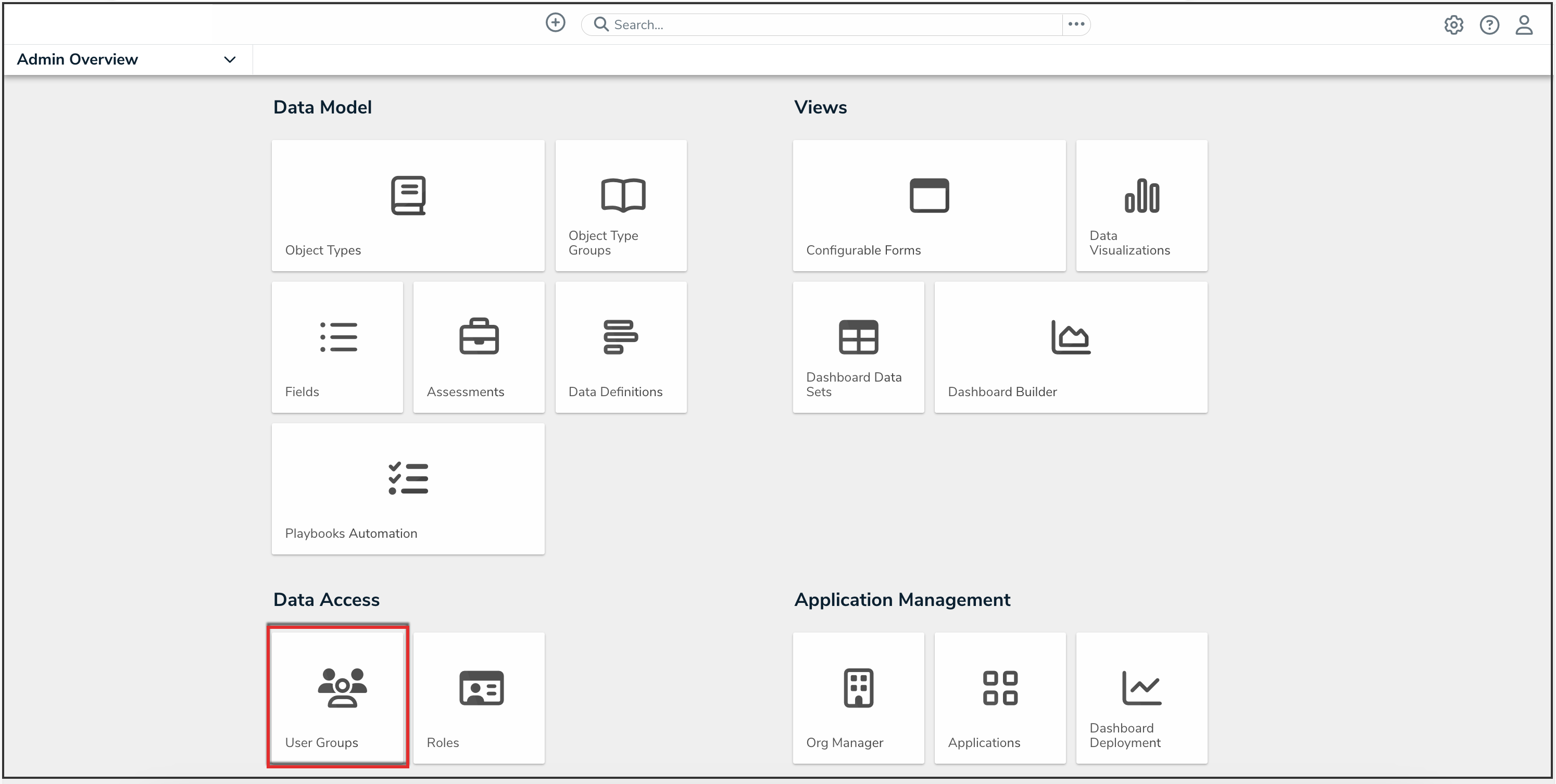 - From the Admin Overview screen, click the User Groups tile under the Data Access section.
