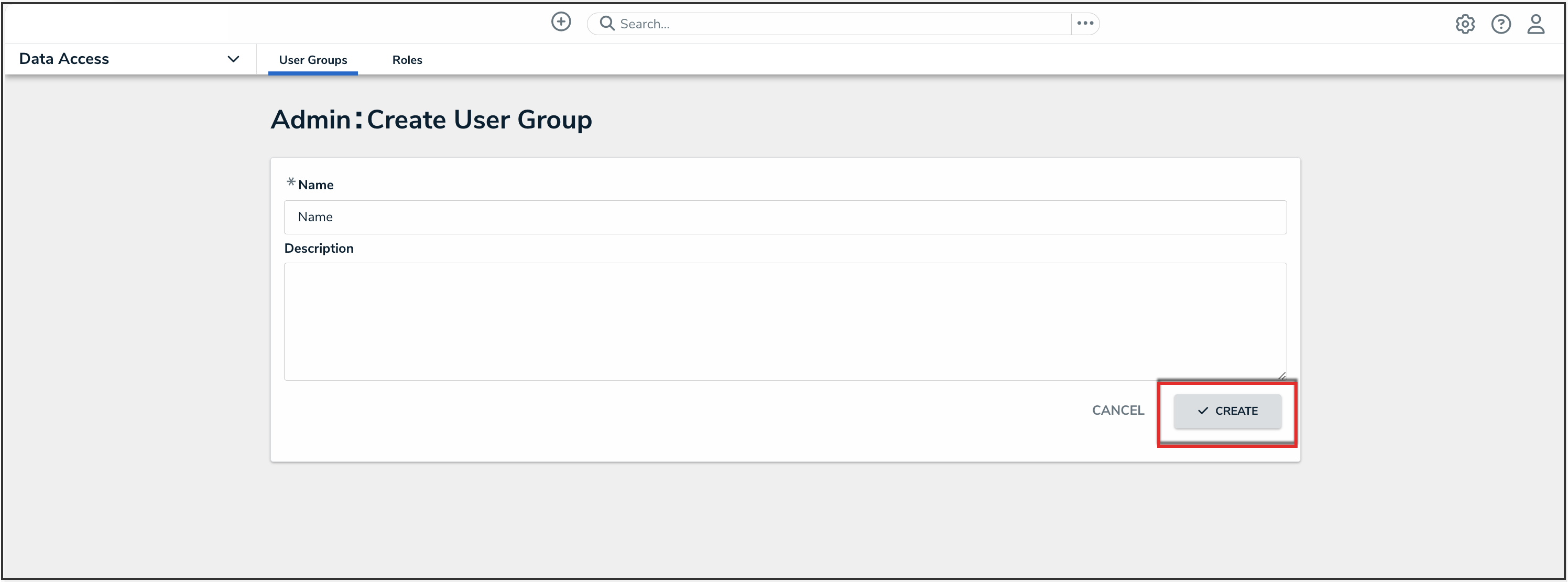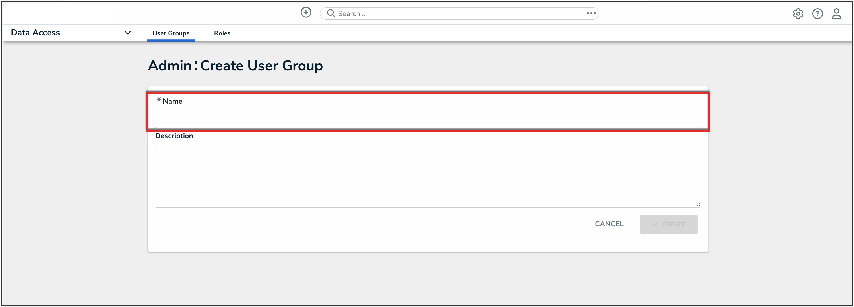 - From the Create User Group screen, enter a user group name in the Name field.