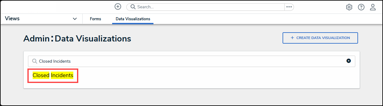 - From the Admin: Data Visualizations screen, enter a Data Analytics Export name in the Search field.