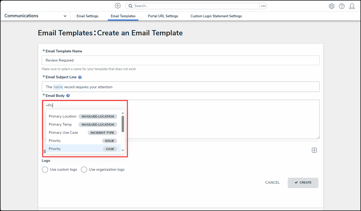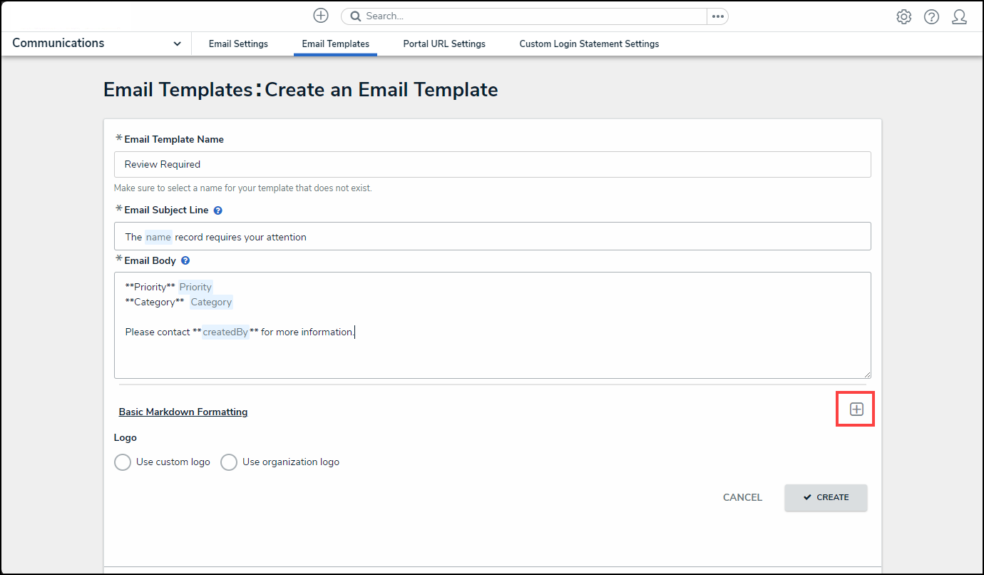 - Use Organization Logo: Allows users to use the organization logo to brand the email template. Please refer to the Using an Organization Logo for Branding Email Templates article for further information.