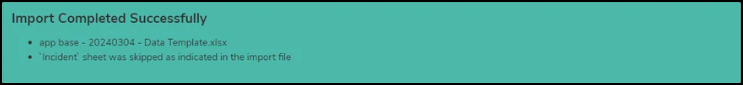 2. Once the data import is completed successfully, all skipped sheets will be listed within the Import Completed Successfully banner.