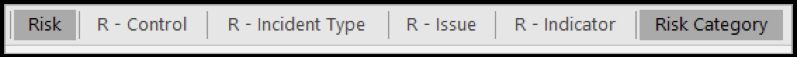 Click an object type tab (highlighted at the bottom of the spreadsheet), to select its worksheet (e.g., Risk). Worksheet tabs generate in alphabetical order, with relationship tabs being labelled with the monogram of their saved object type and their object type group (e.g., R - Control).