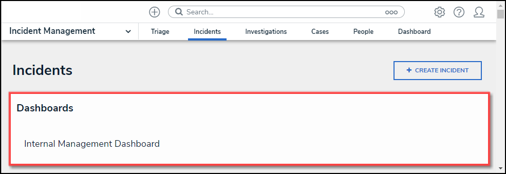 - Navigate to the Activity within the system. A new Dashboards section will appear, listing the Dashboard.