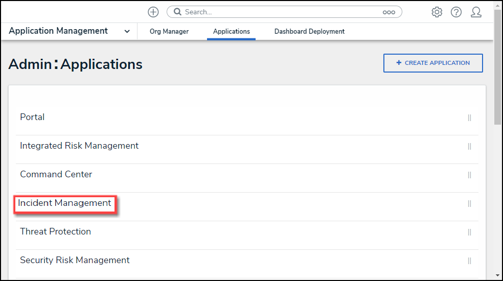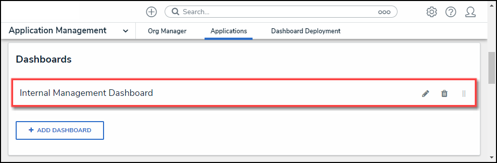 - From the Admin Applications screen, scroll to the Application and click the Application Name you want to embed a Dashboard.