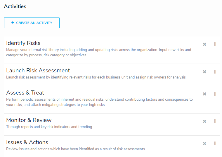 - To rearrange the order of the activities as they appear in the left navigation menu, click the icon next to an activity then drag it to a new location on the page.