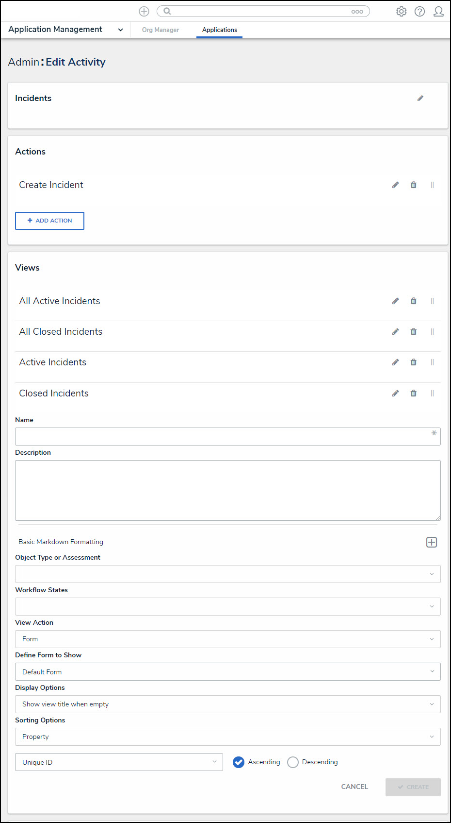 - Click the Create button to add the Activity View to the system.