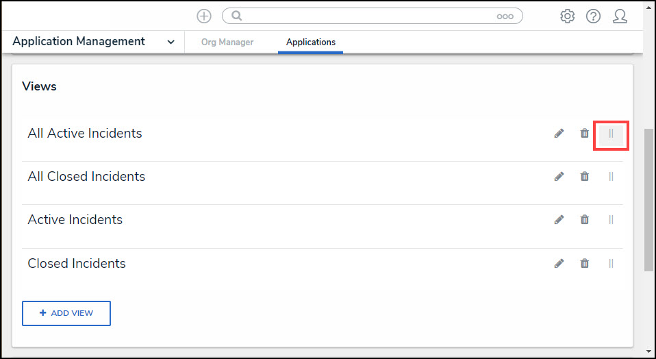 - Click the Reorder icon, continue to hold the mouse button and drag and drop the Activity View to rearrange the Activity View order.