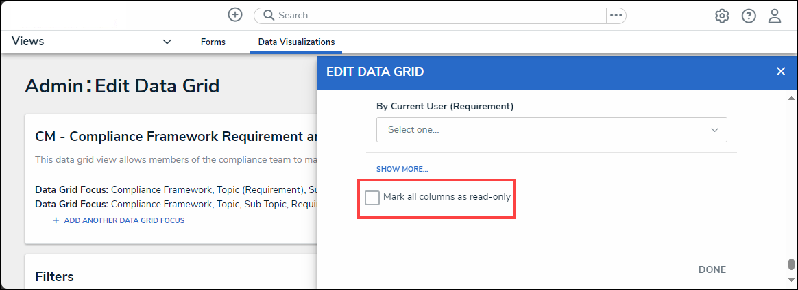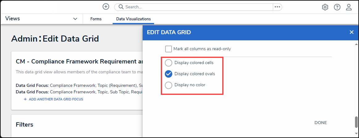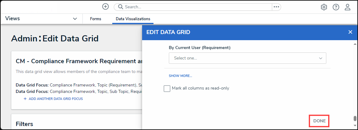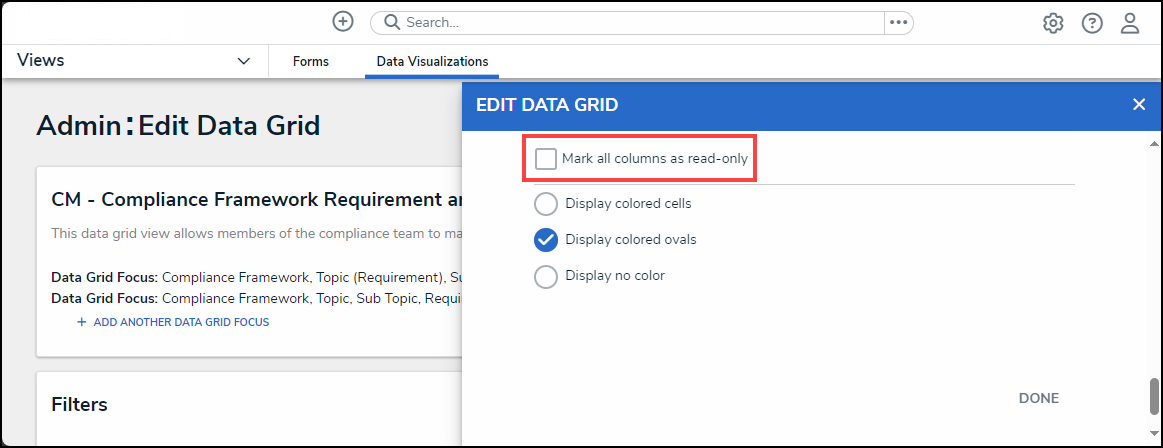 - Click Done to close the Admin: Edit Data Grid screen.