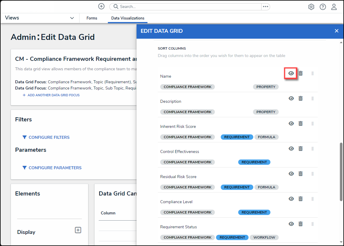 Note: Once a Focus is added to a Data Grid it cannot be removed. A Locked Icon will appear next to all focuses, added to the Data Grid. |