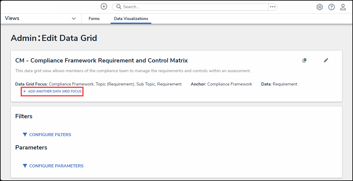 - From the Admin: Edit Data Grid screen, click the + Add Another Data Grid Focus link.