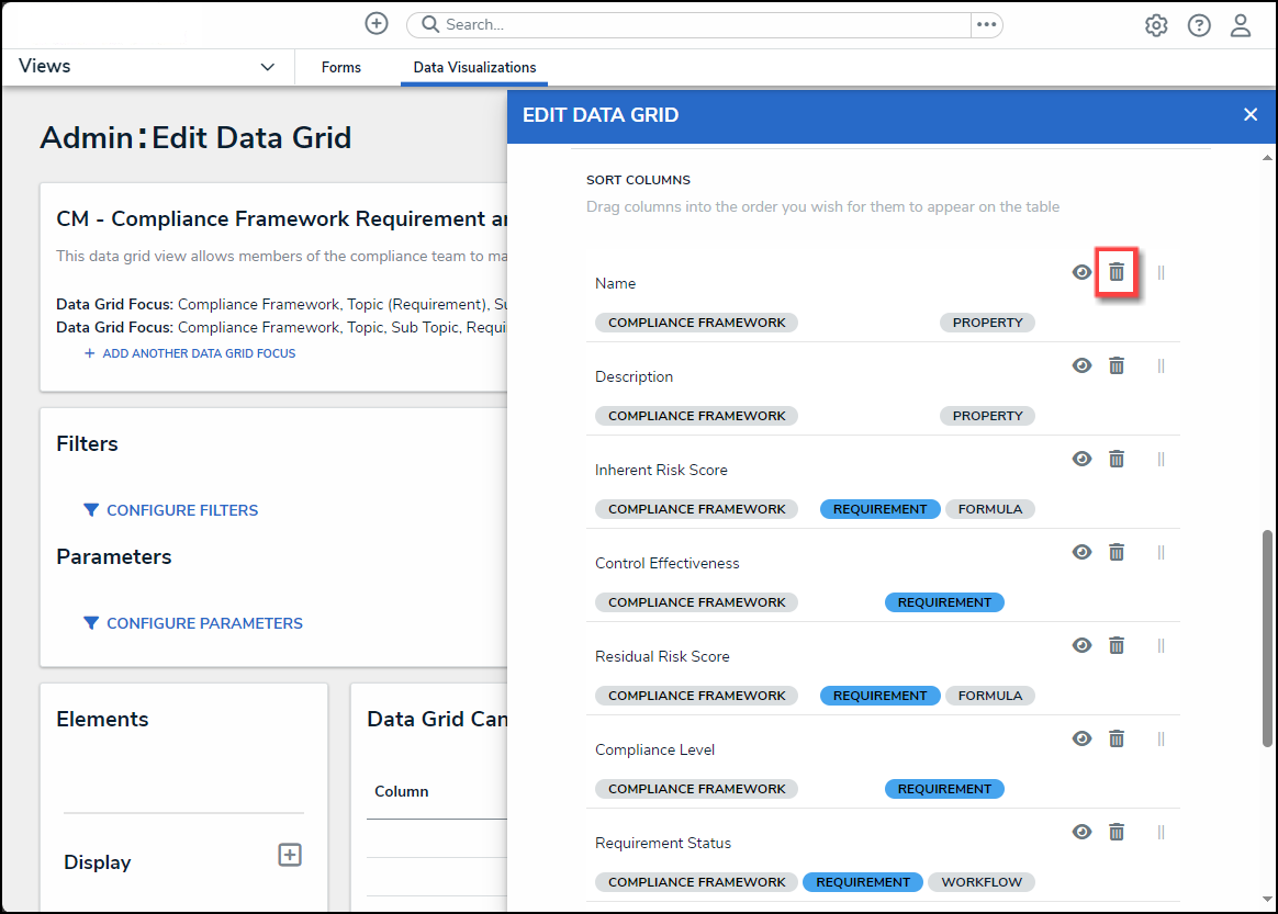 - Click the x icon next to a parameter to remove it from the data grid.