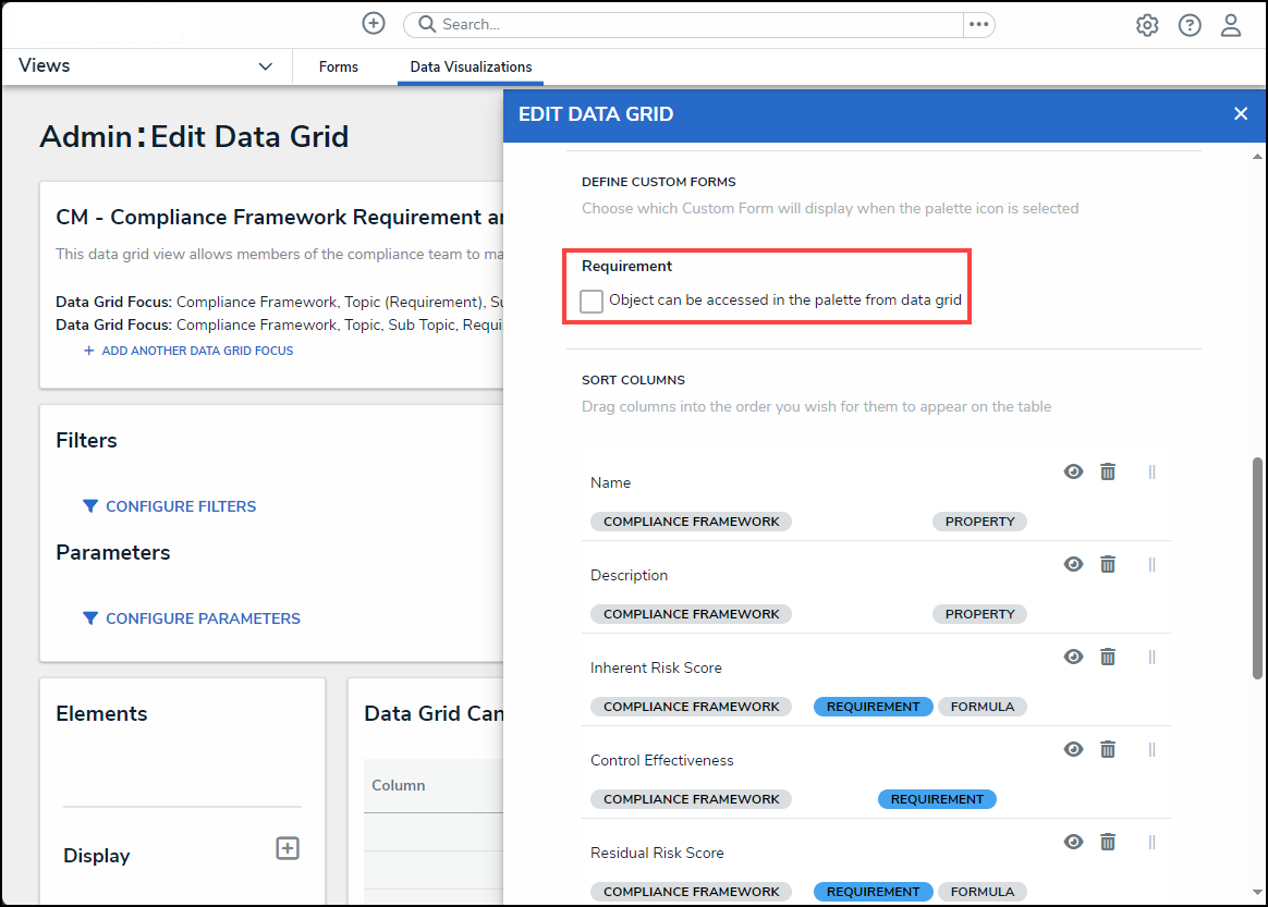 - (Optional) Select the Object can be accessed in the palette from data grid checkbox, to allow users to open an object in a pop-up while viewing the data grid.