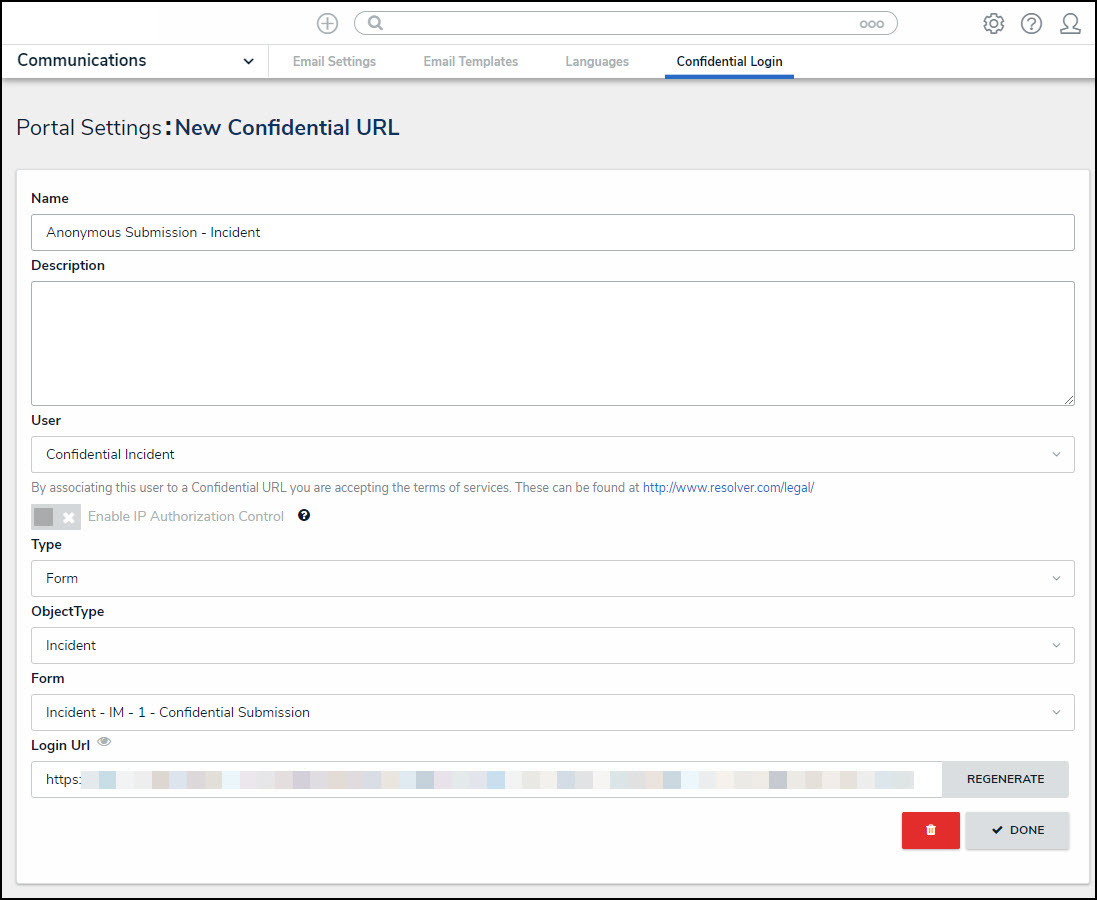 Before Resolver Mobile users can submit incidents through the app, an admin must grant them access to the form by sharing the confidential login URL. For information on customizing the form users, see the Configure the Resolver Mobile Form article.