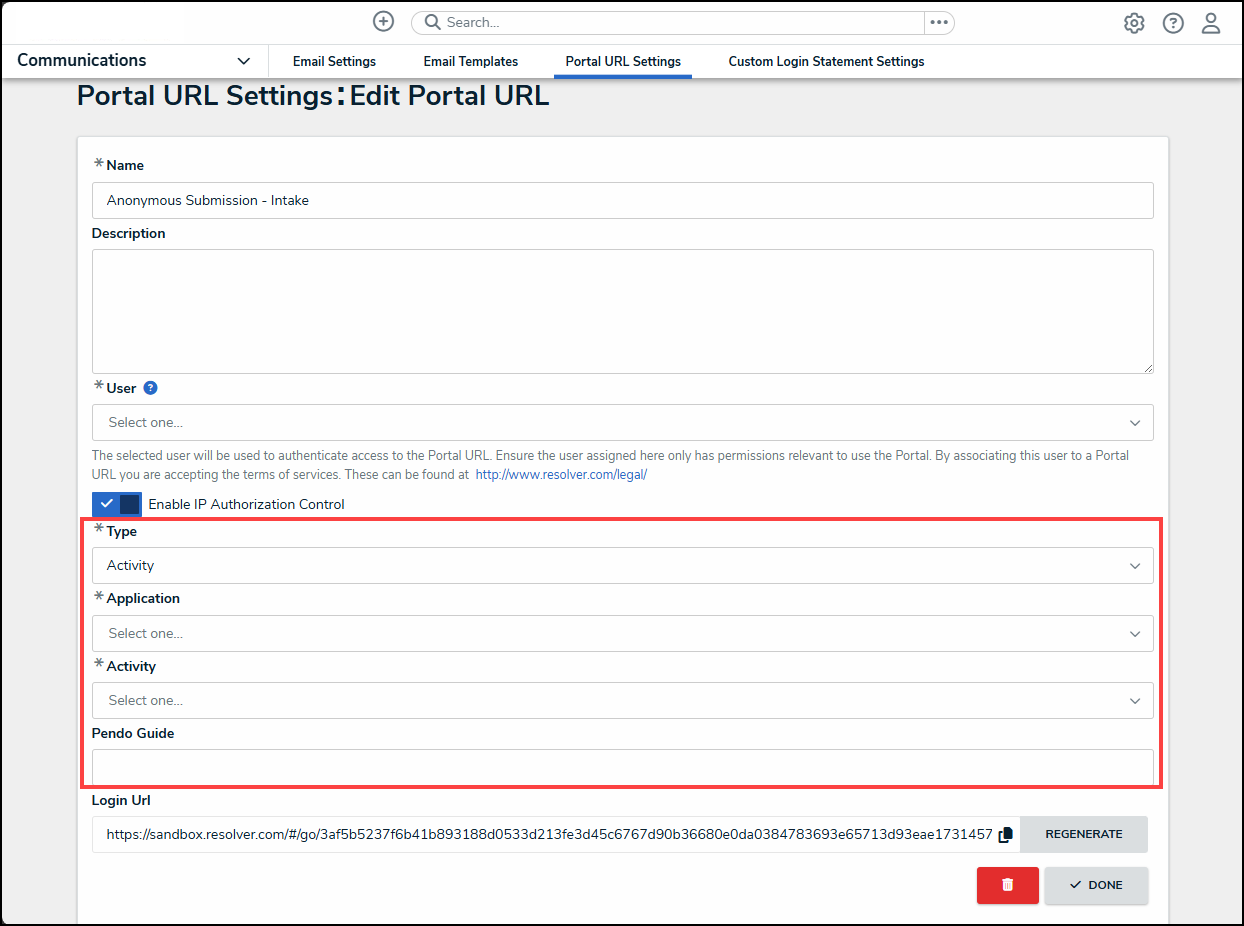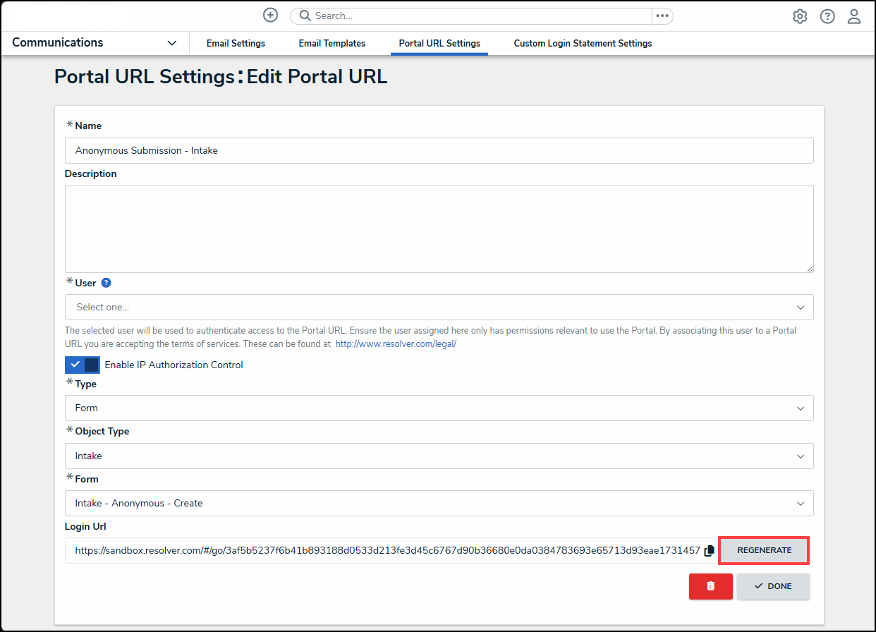- Click the Regenerate button from the Login URL field to create a new Login URL.