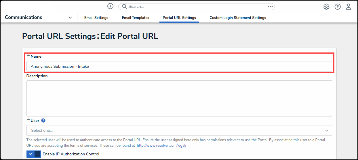 - From the Edit Portal URL screen, click the Name field to edit the Portal URL name.