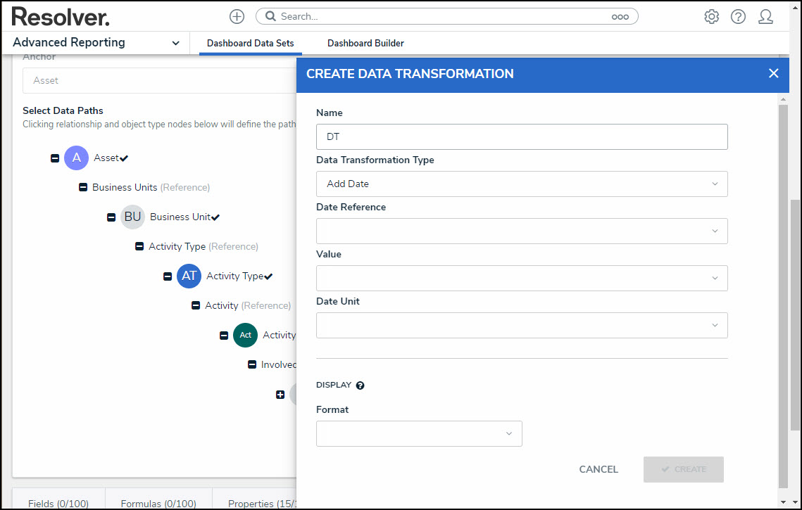 The user account you use to log into Resolver must have Administrator permission or Data Management advanced permissions to add a Data Transformation to a Dashboard Data Set.