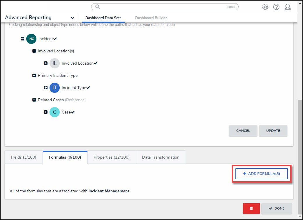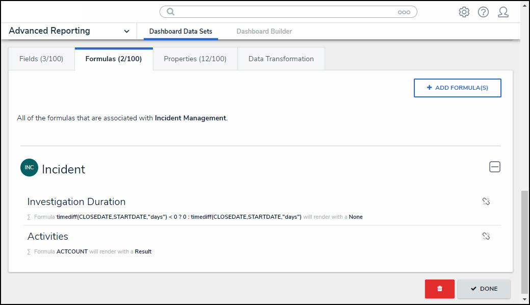 | Adding Formulas to the Dashboard Data Set |