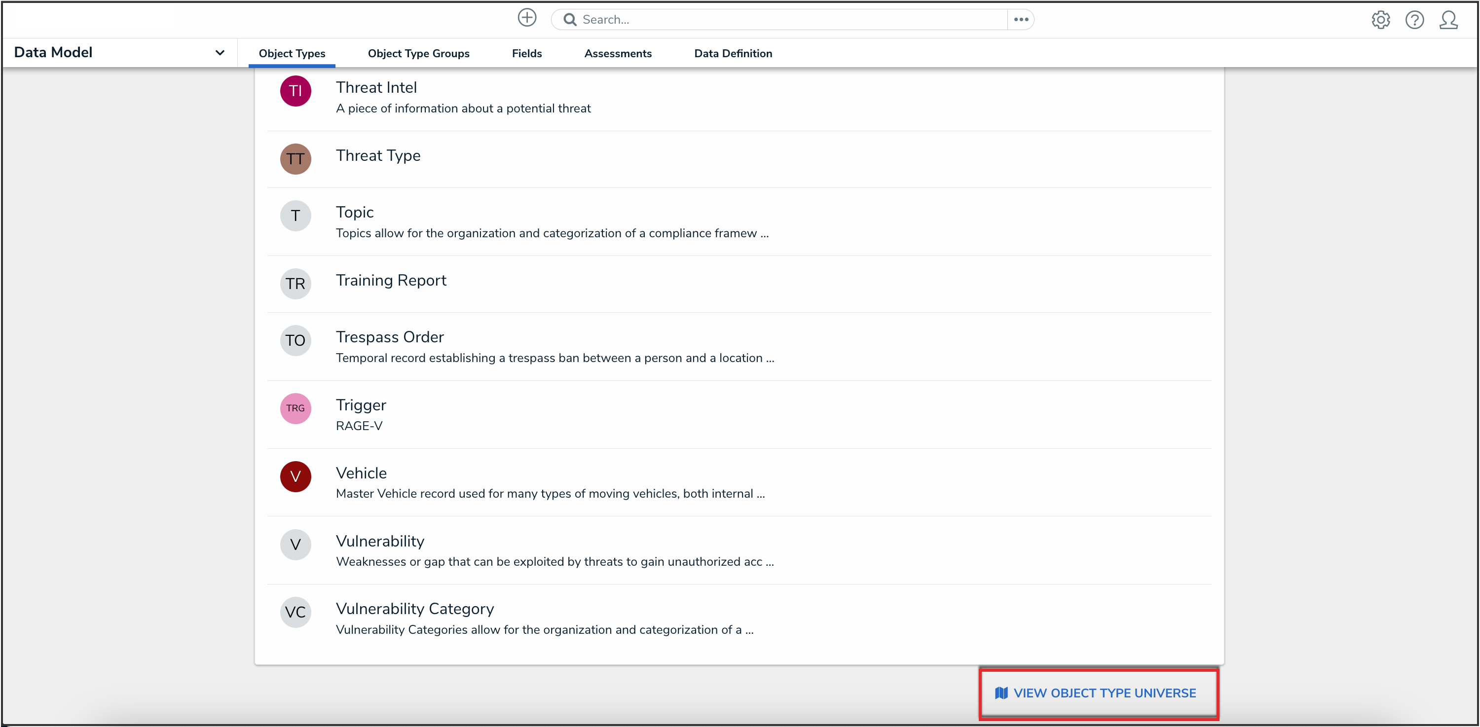 - At the bottom of the Object Types screen, click the View Object Type Universe button to display the graph.
