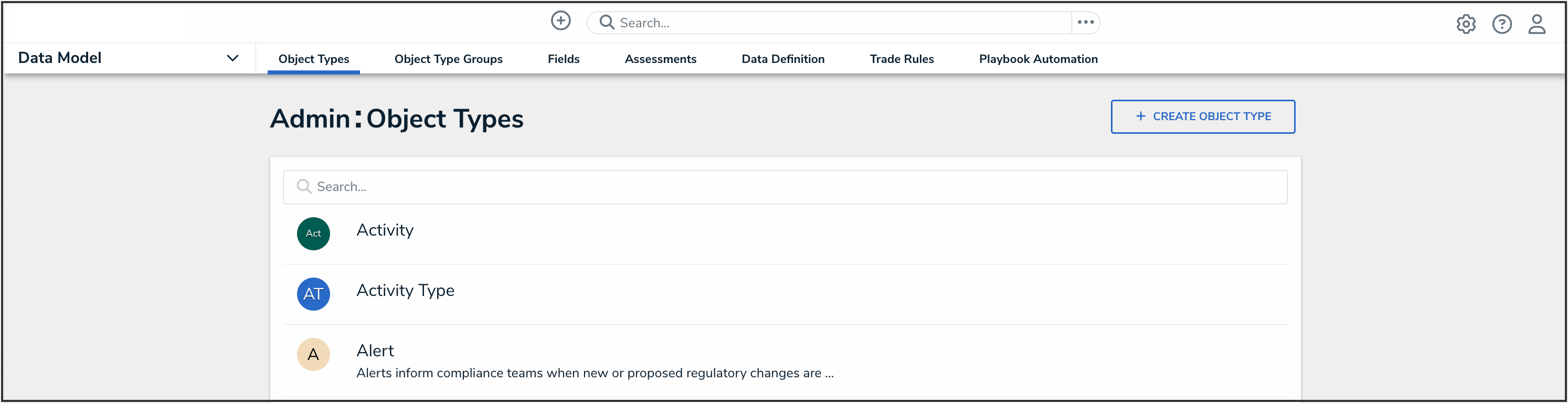 - From the Admin Overview screen, click the Object Types tile under the Data Model section.