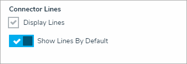 - In the Connect Lines section, select the Display Lines checkbox to allow end users to enable lines between objects that appear more than once on the map through multiple data points. If this checkbox is selected, you can toggle the Show Lines By Default option to show the lines automatically once the report has loaded.