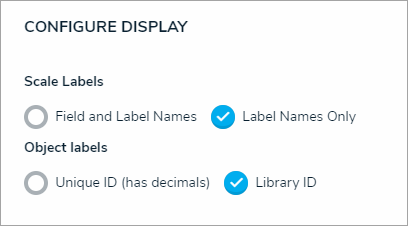 - In the Object Labels section, select the Unique ID (has decimals) option if you want to display the decimals of any assessment instances (e.g., 32.1). Select Library ID if you do not want decimals displayed (e.g., 32).