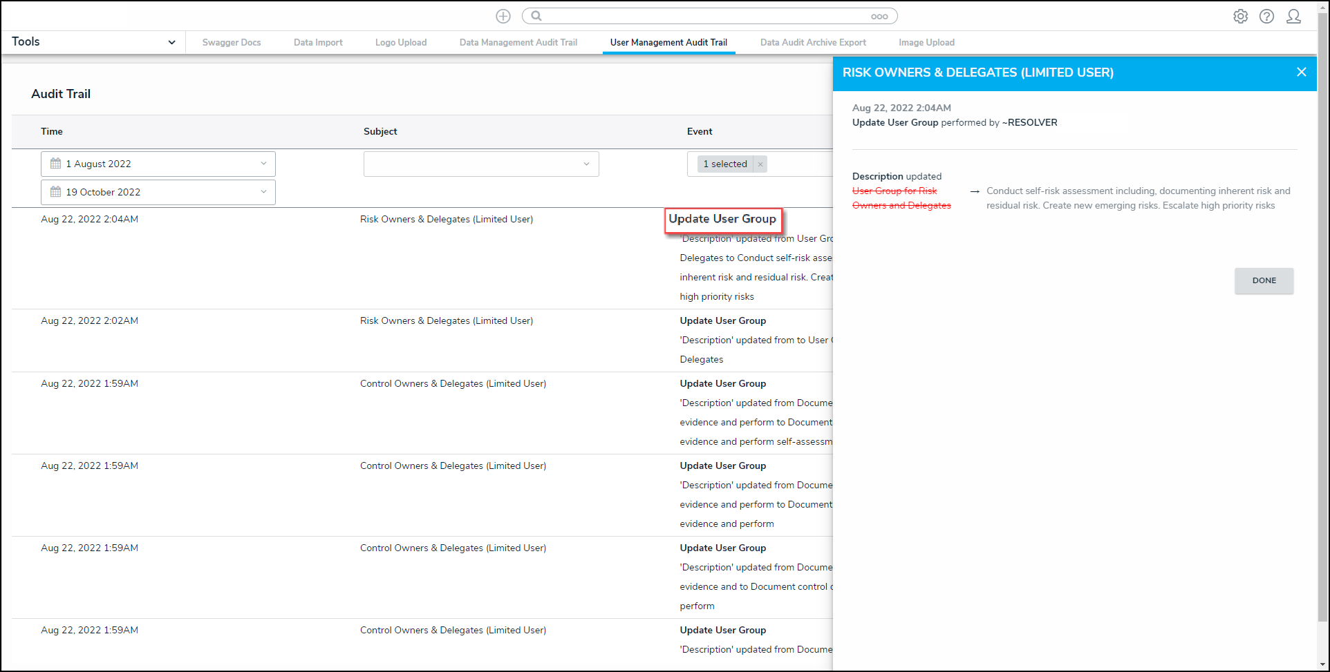 For more information on using the User Audit Trail, please refer to the User Audit Trail Overview and User Audit Trail Events & Filters articles.