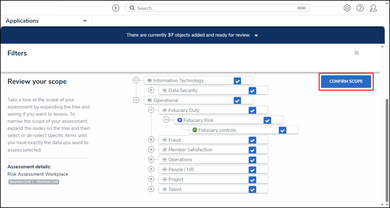 - After you have reviewed the assessment scope, click the Confirm Scope button.