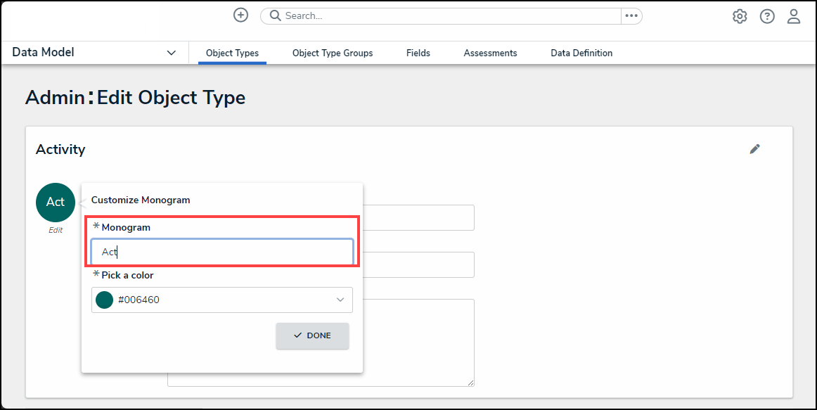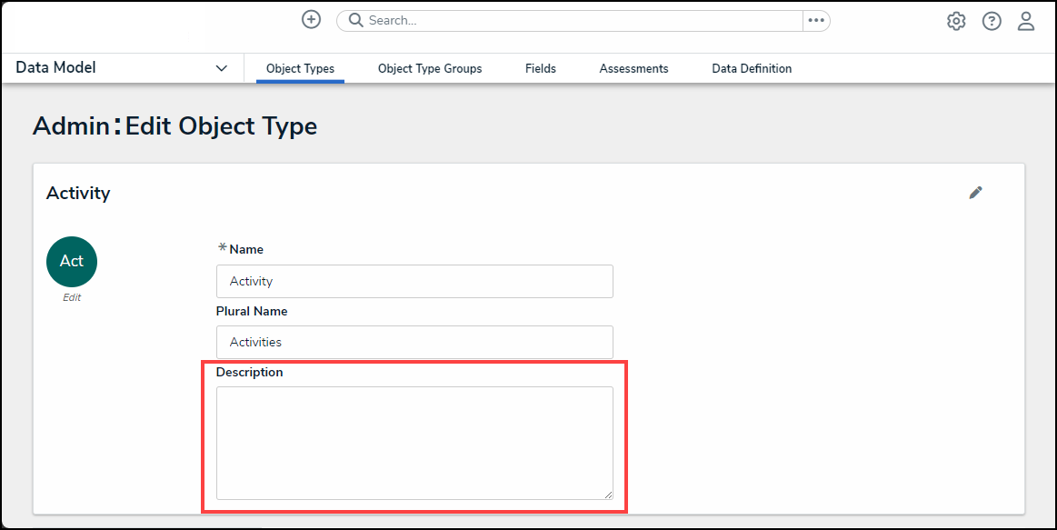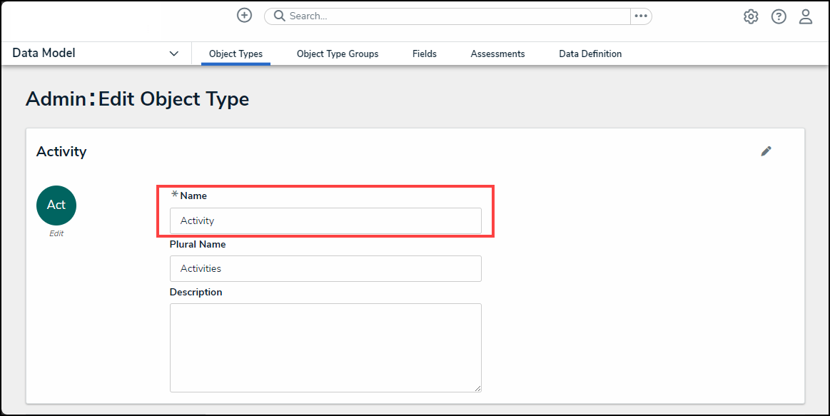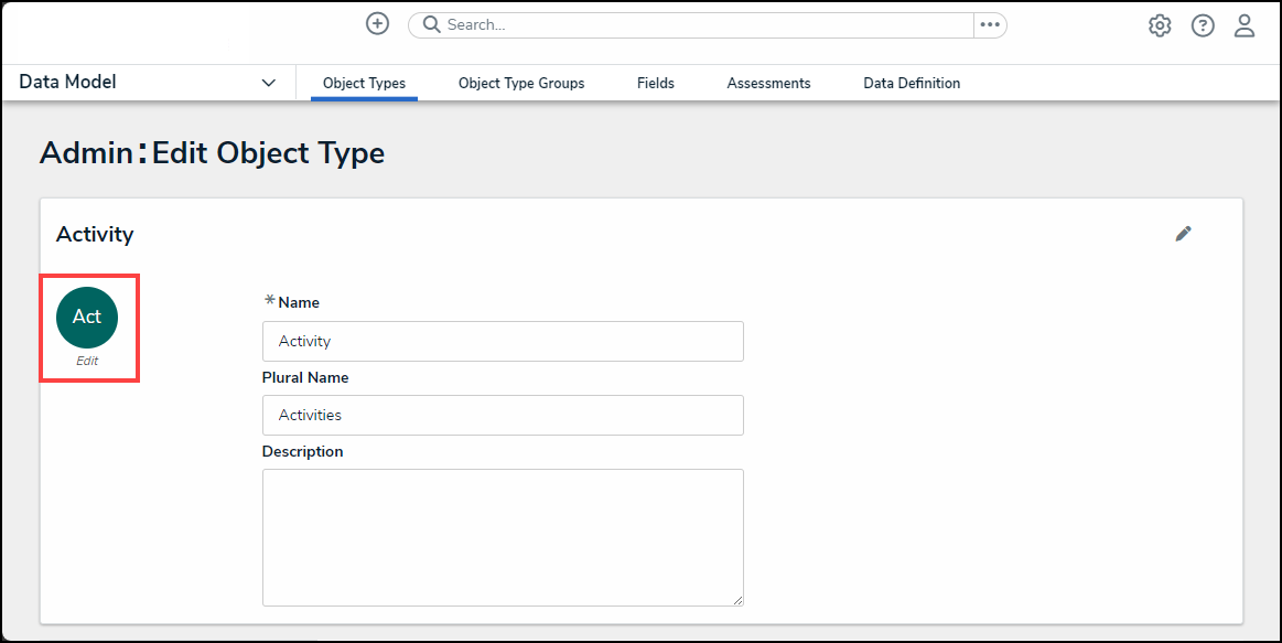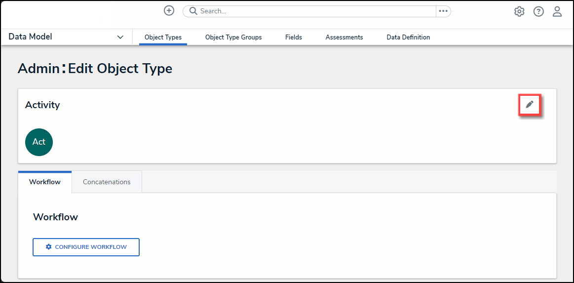 - From the Admin: Edit Object Type screen, click the Edit icon.