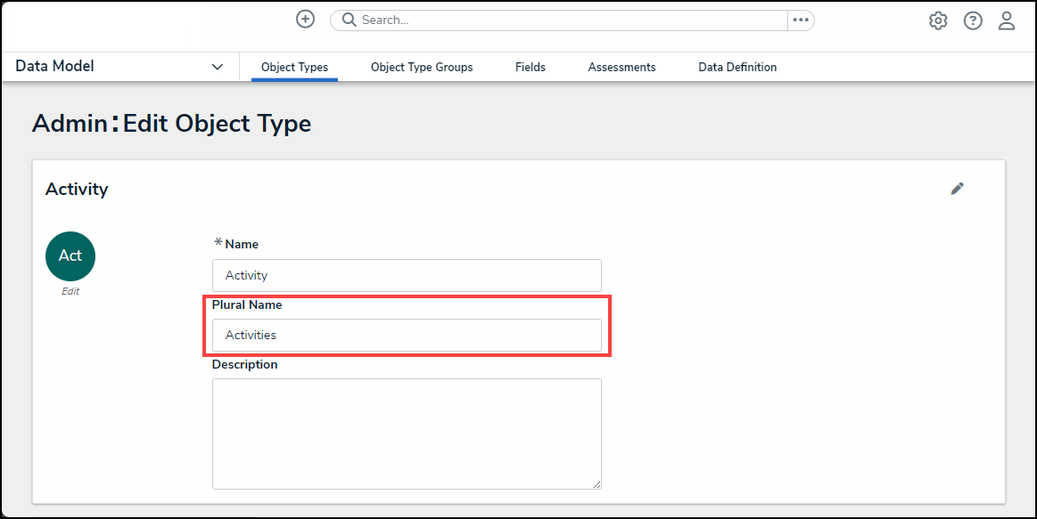 - Click on the Plural Name field and enter a new plural name value. The plural name will appear when viewing a list of the objects for that type (e.g. “View Incidents” instead of “View Incident”).