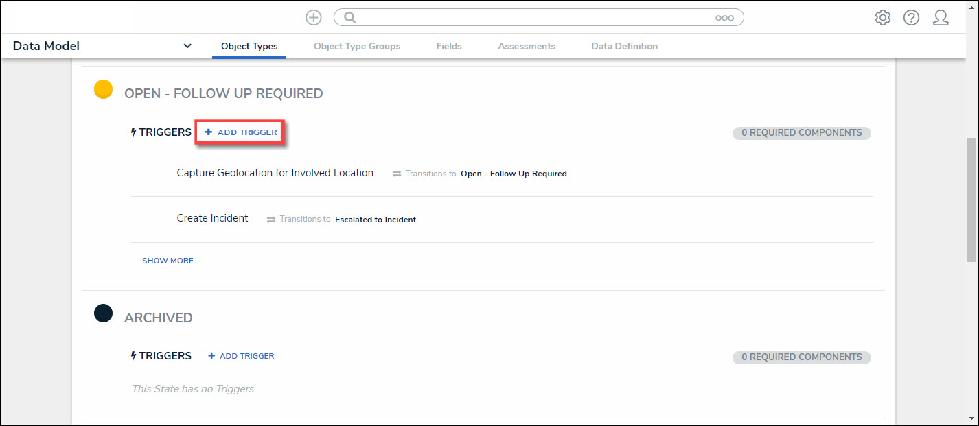 - From the Admin Overview screen, click the Object Types tile under the Data Model section.