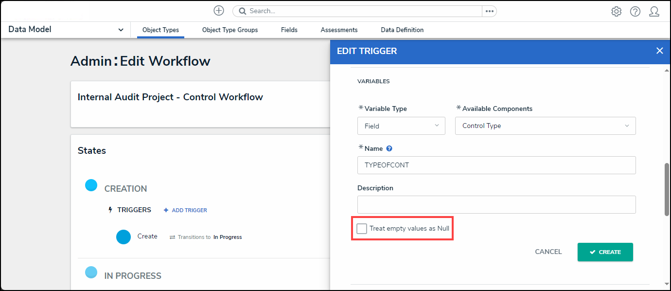 - (Optional) Select the Treat empty values as Null checkbox, to exclude blank objects from a formula calculation. For more information, see the Null Values in Formulas article.