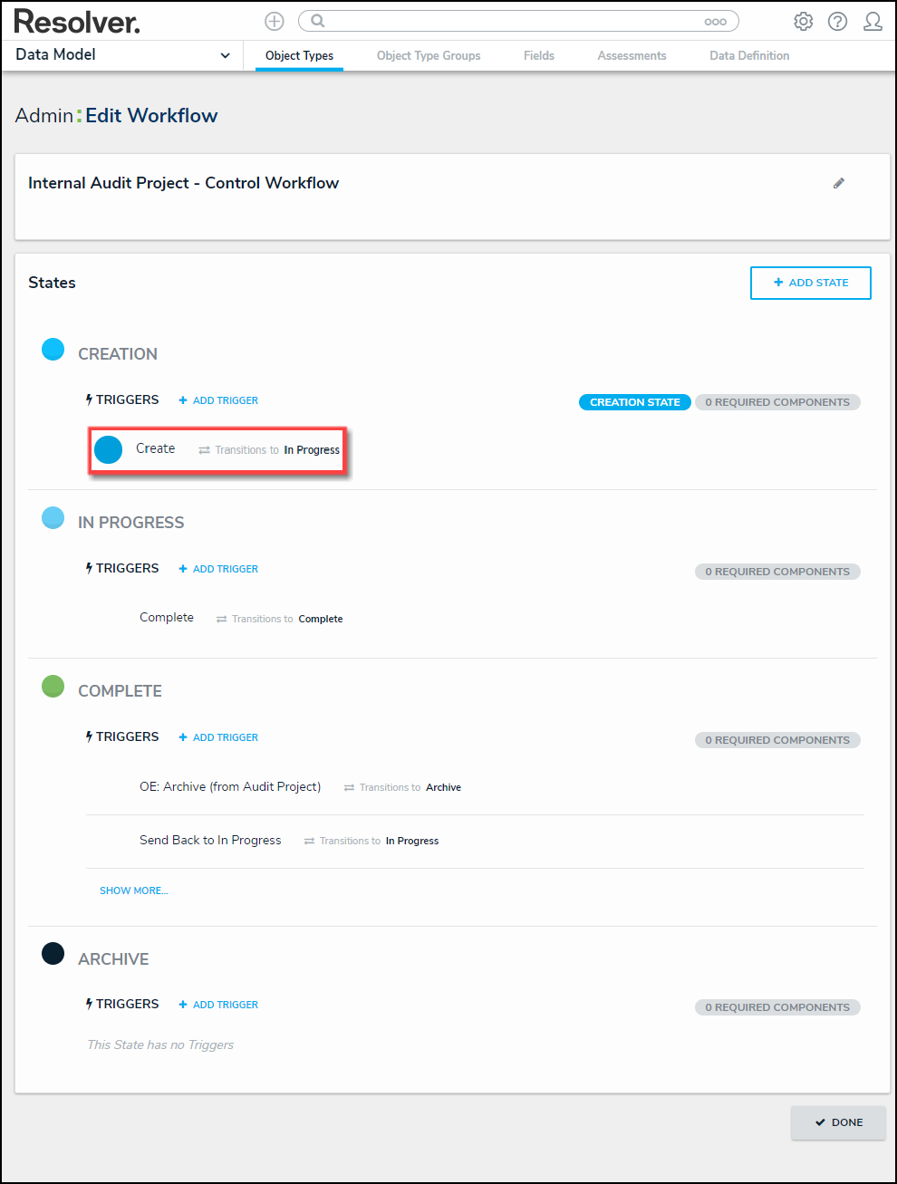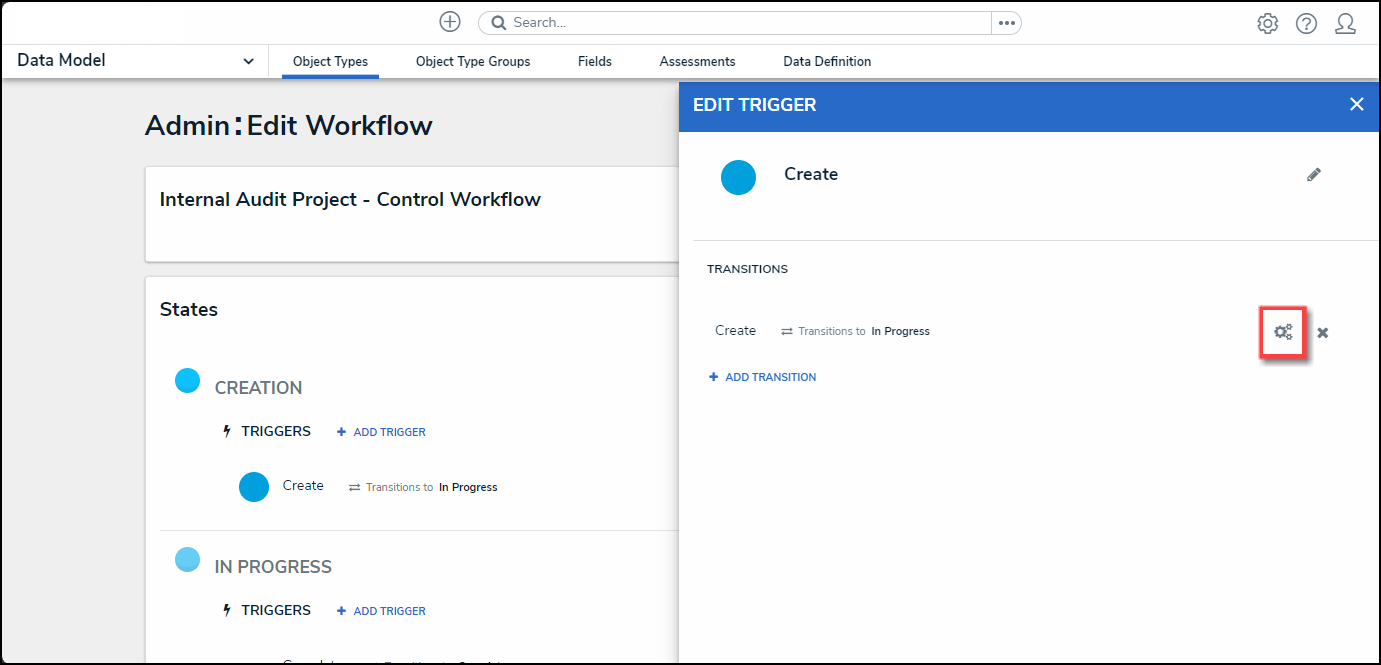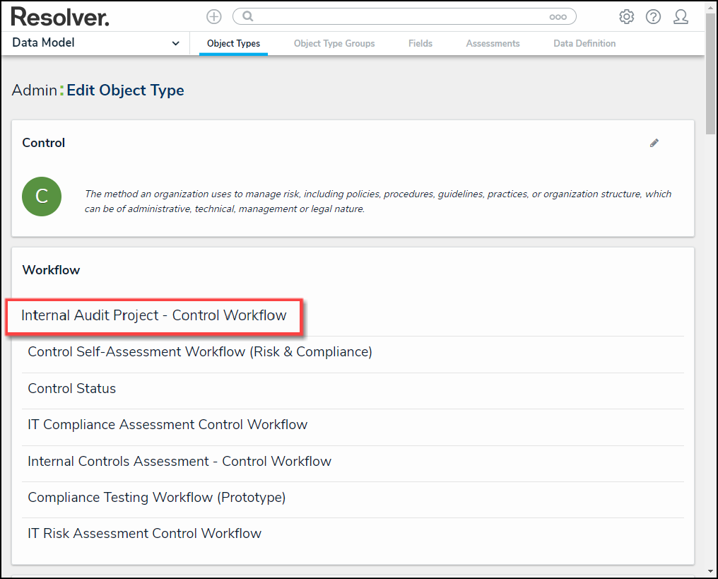 - From the Edit Object Type screen, click on a workflow under the Workflow section.
