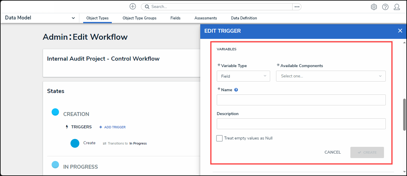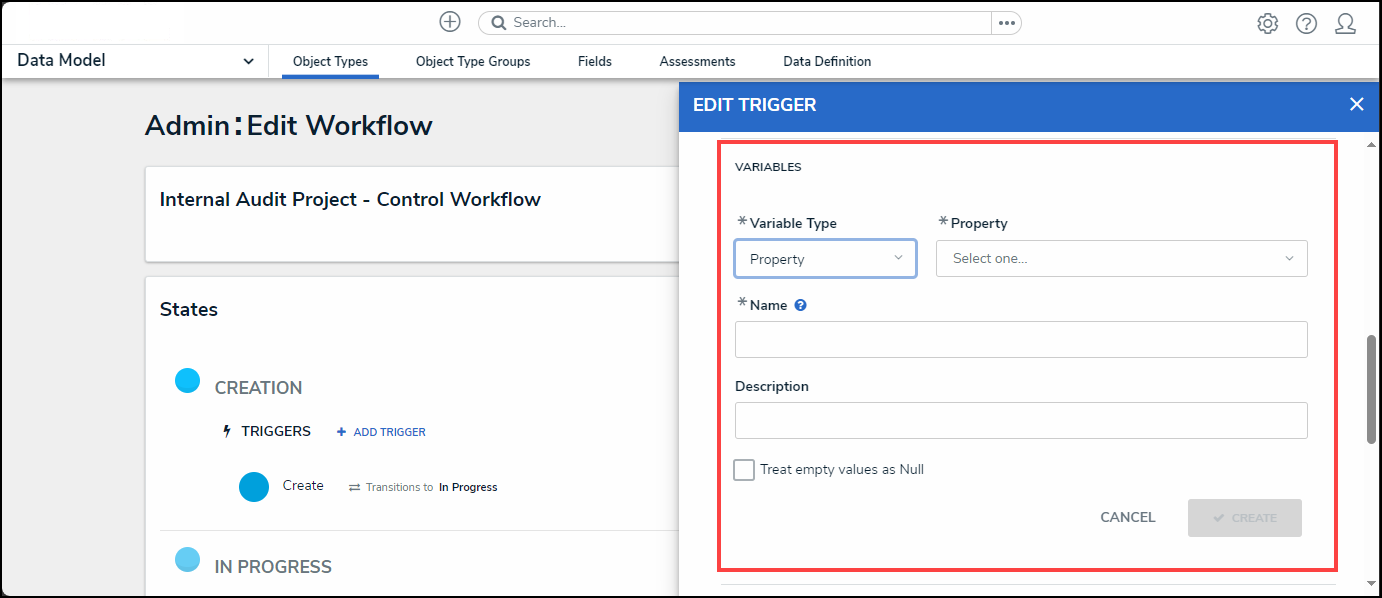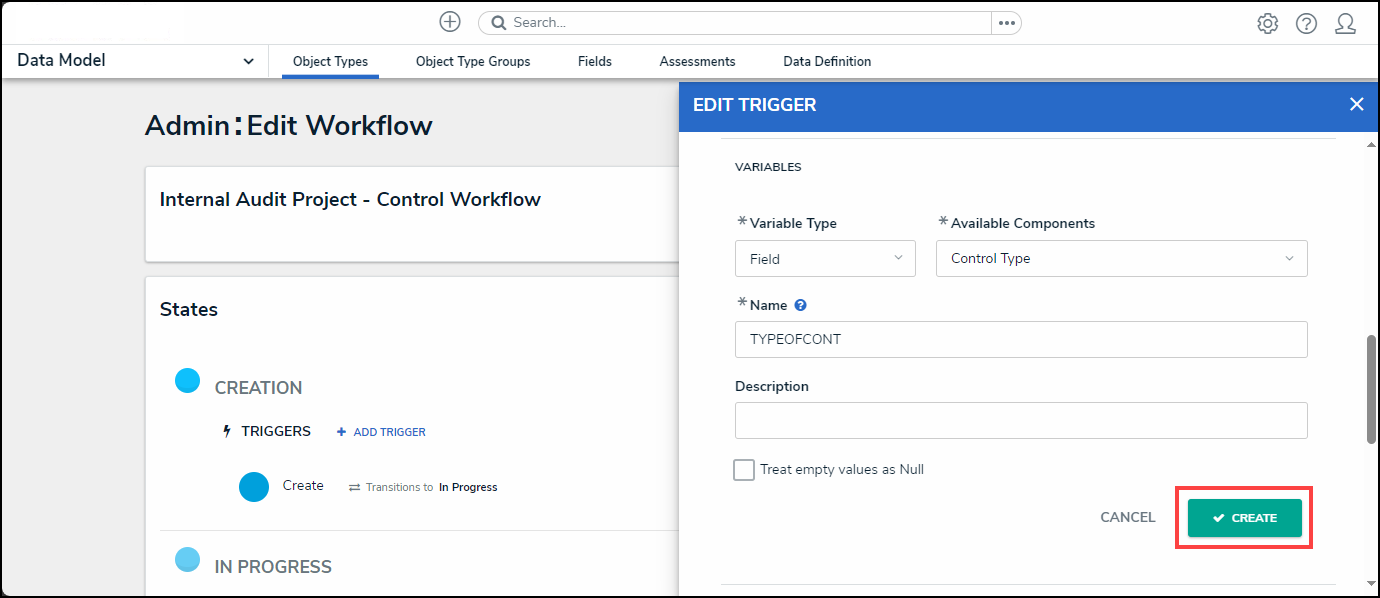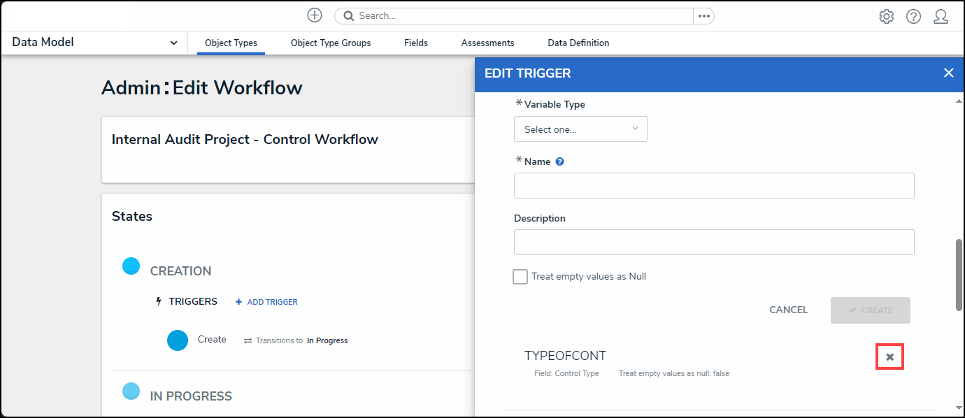 - From the Edit Object Type screen, click on a workflow under the Workflow section.