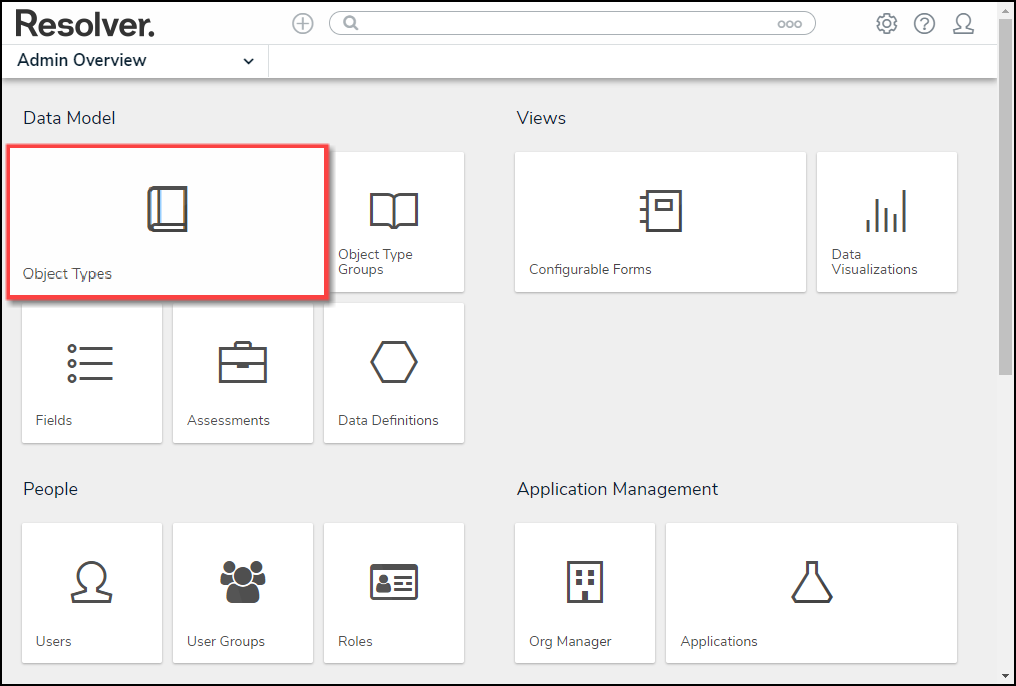 - From the Admin Overview screen, click the Object Types tile on the Data Models section.