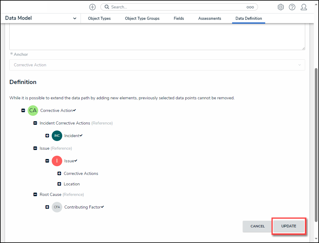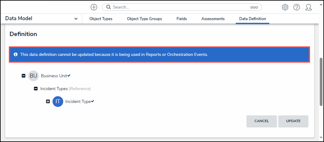 Users can now add additional elements to a Data Definition if Reports or Orchestration Event Actions do not currently use it. Otherwise, Data Definitions can be edited by extending the path. System-generated messages will now indicate when additional elements can be added and when a Data Definition is used.