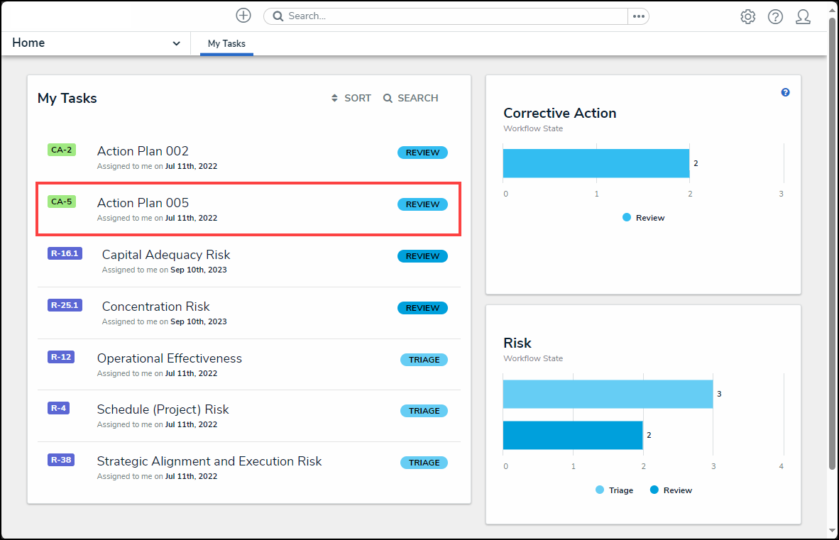 There are many ways to access objects within the system. For this illustration, we will be accessing an object through the My Tasks card on the Home screen.