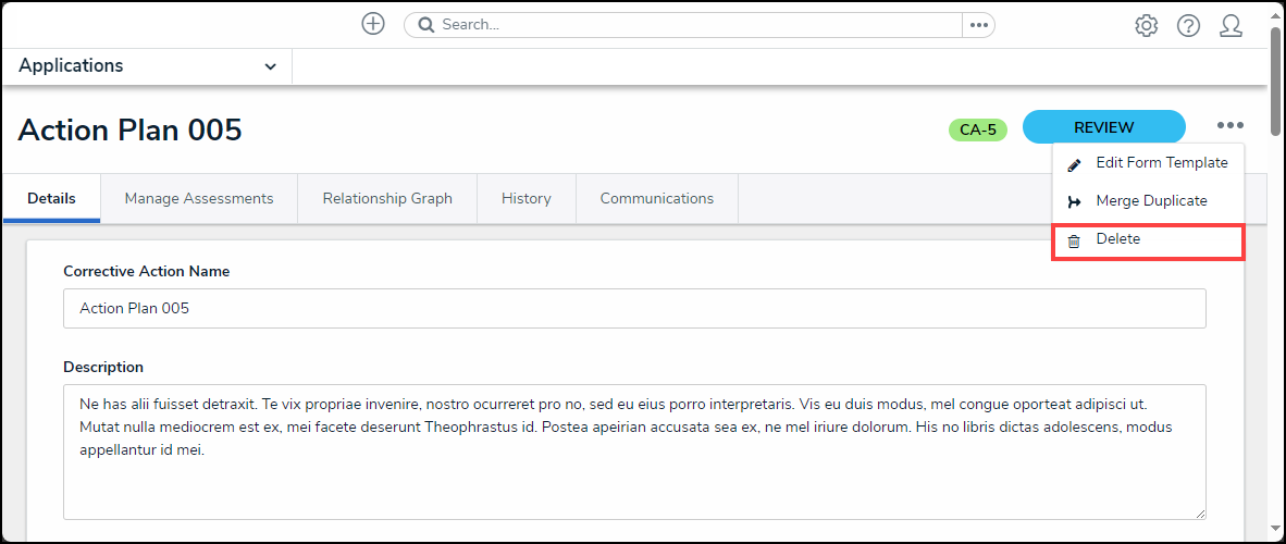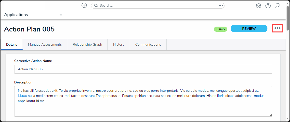 - From the Corrective Action (Object) screen, click the More Actions icon.